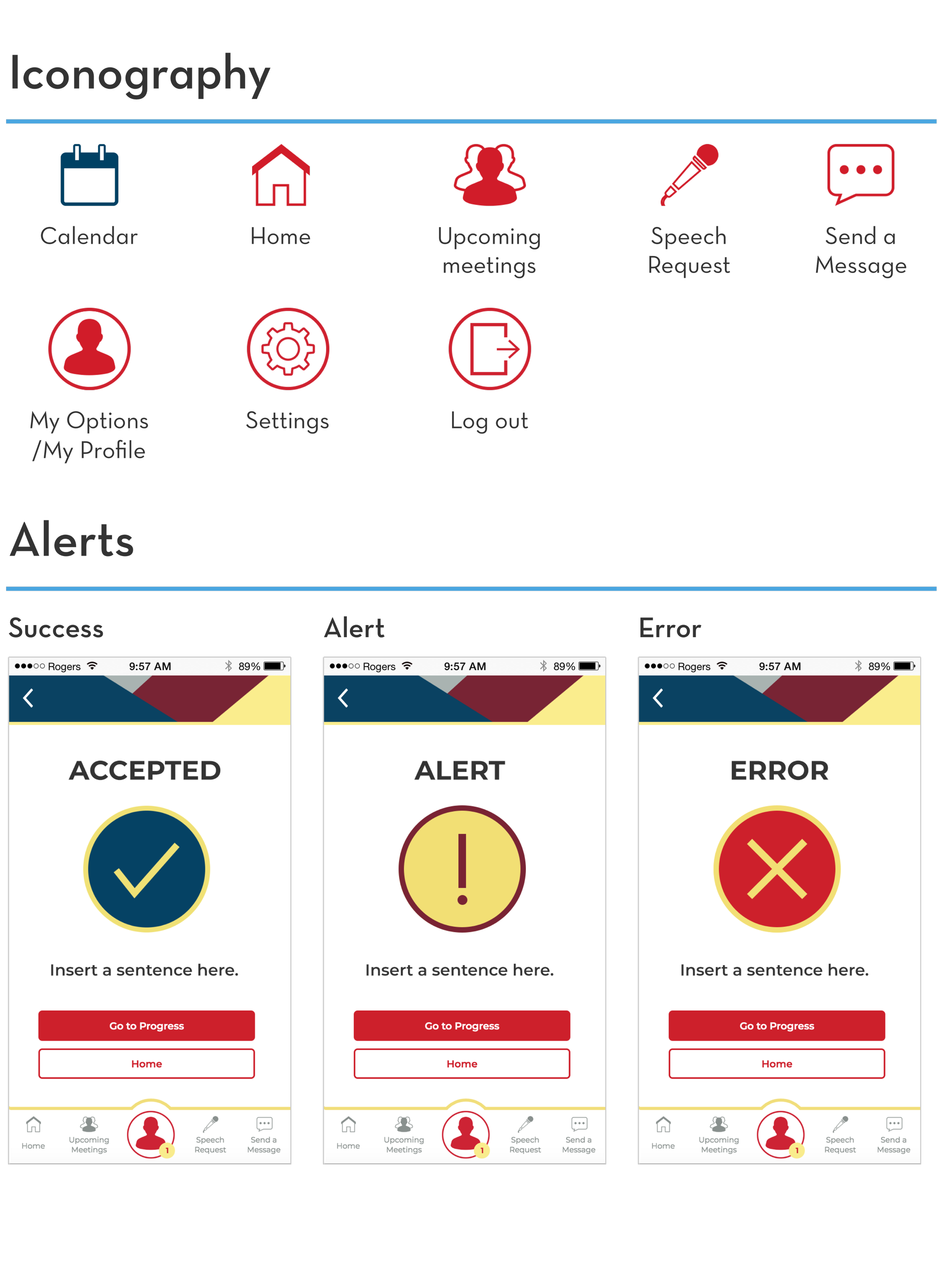 The visual layout and design of this mobile app are influenced by the branding guidelines of Toastmasters International. Also, I redesigned the logo because I felt it needed a fresh new look and professional identity to target this product to the appropriate audience. Since it’s targeted to Toastmasters club members only, I felt that it was best to correlate the new logo with the Toastmasters International brand. As per the branding guidelines, I used their, typography and other visual design elements to positively convey the organization’s message to then incorporate them into the prototype.