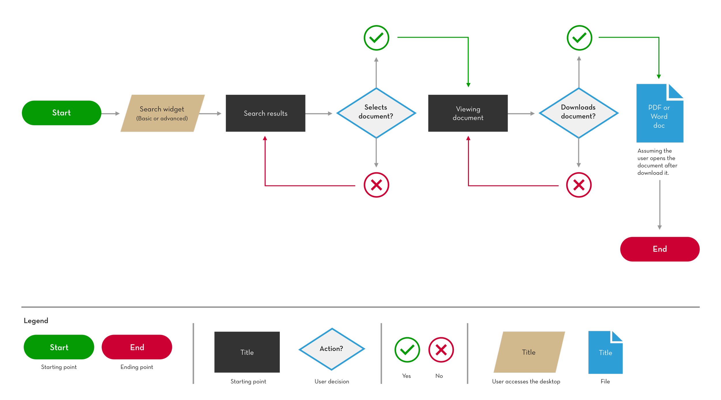 Storyboarding helped us imagine the desired scenario when our persona searches for a document